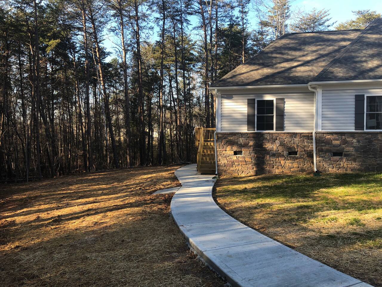 Enjoy your own suite with private entry on the end of our custom built home nestled on 5 acres in Southwest Charlotte. Wake up to deer walking in the beautiful forest while you enjoy your complementary coffee on your private deck. Take a stroll in our quiet private drive and cul-de-sac and take a minute to relax and unwind. In just 10-15 mins you can reach Carowinds Theme Park, Whitewater Center, Top Golf, the Outlet Mall, or a nature preserve. Just 20 mins to get to the airport and uptown Charlotte in 25 minutes.